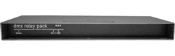 Doug Fleenor Design makes a series of relay packs that are controlled by DMX512. This six channel unit, designed to switch line voltage loads up to 15 amps, uses 30 amp relays. Line voltage input is on an 18" 12/3 SJ pigtail fitted with a 15 amp parallel blade plug. Switched line outputs are on chassis mounted 15 amp parallel blade receptacles.